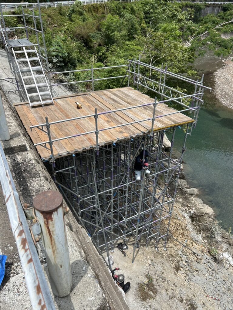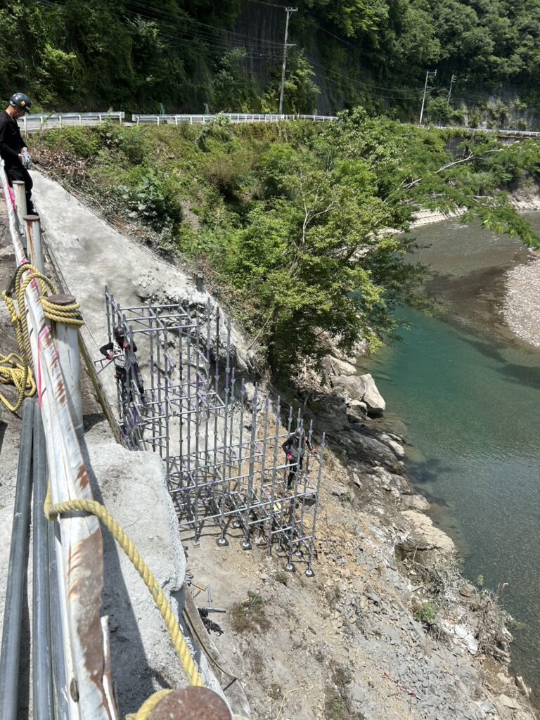 先週、金曜日と土曜日(2日間)西米良村にて、災害復旧工事の足場設置をいたしました。