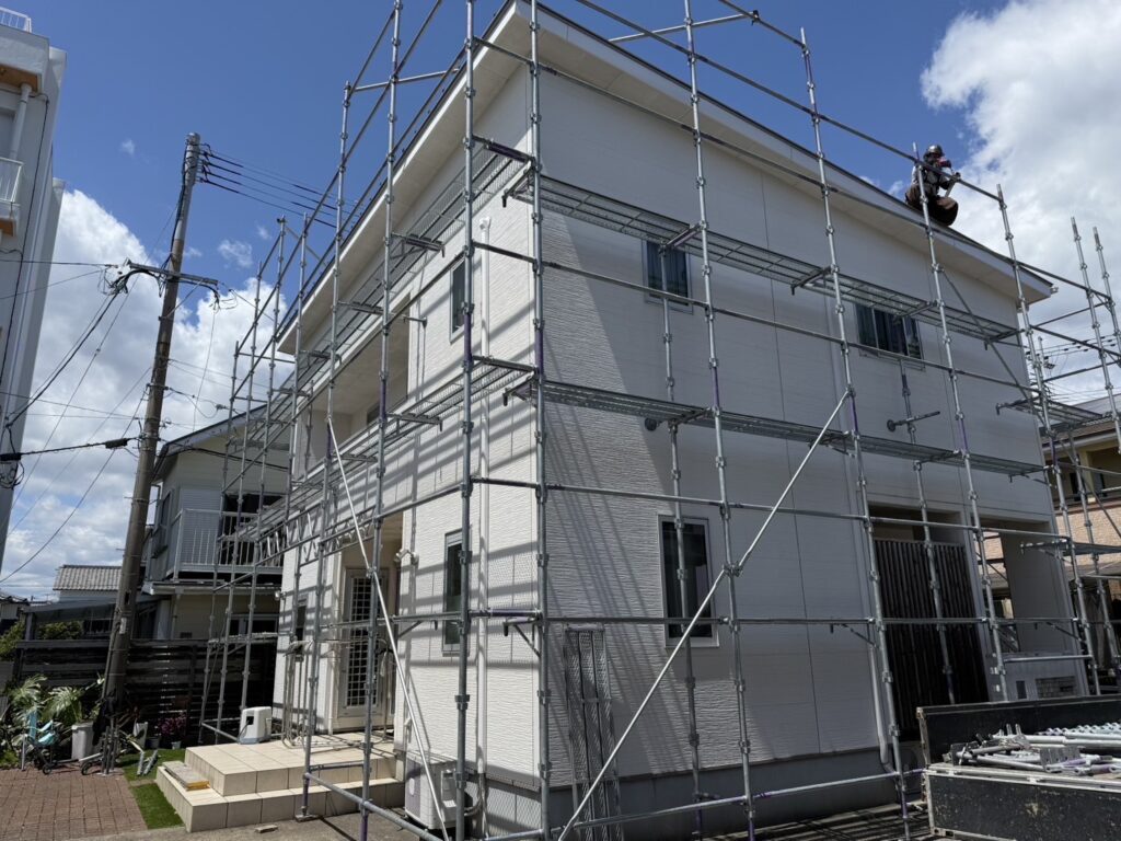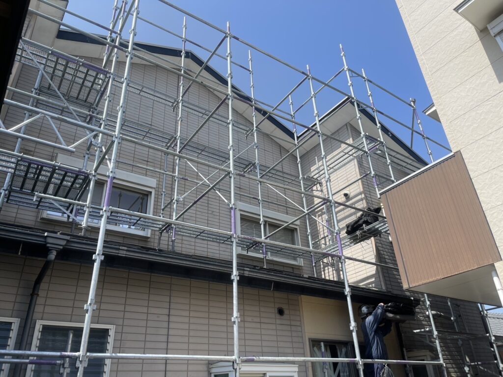 今日は梅雨入り前の足場施工中の様子を紹介します。